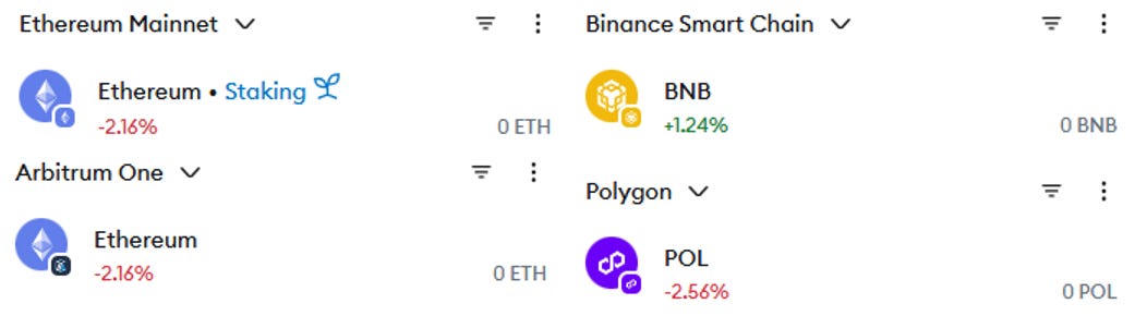 Abrió su wallet y busco en todas las EVMs: